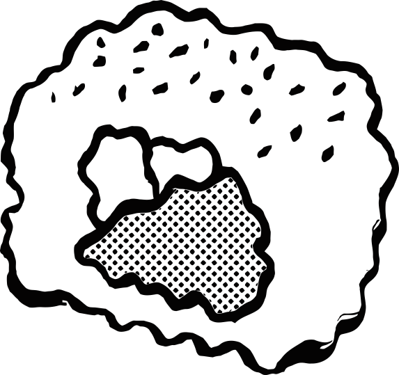 krewetki w tempurze, kanpyo, awokado, serek, całość w omlecie tamago